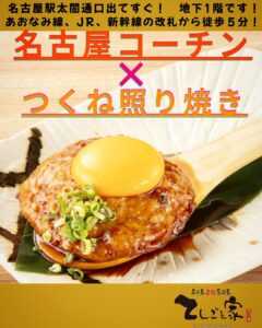名古屋コーチンを贅沢に使ったつくねの照り焼きは旨みが詰まって絶品!他にも名古屋コーチンを使った絶品メニューや定番の名古屋めしをご用意しております!