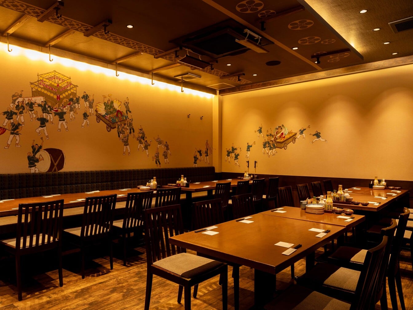 落ち着いた雰囲気の店内には半個室席も完備。