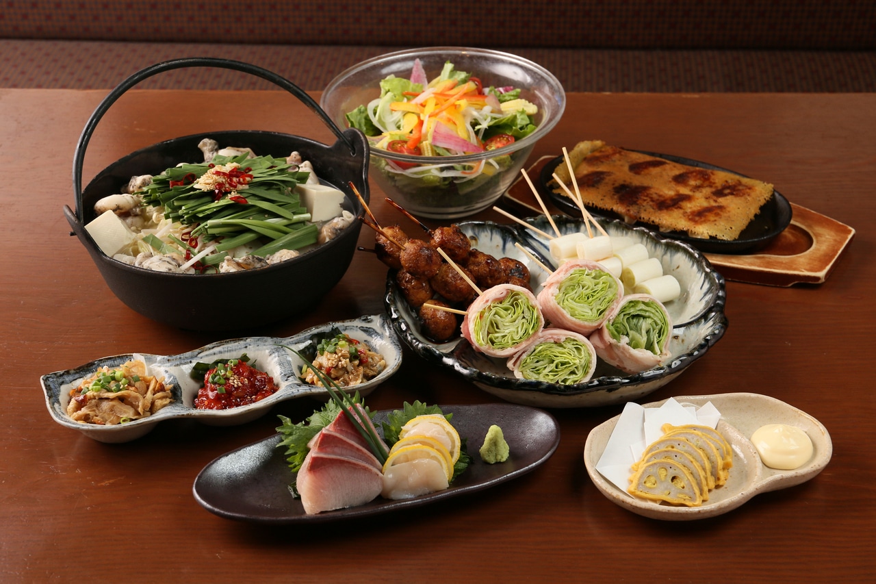 野菜巻き串・餃子・もつ鍋が